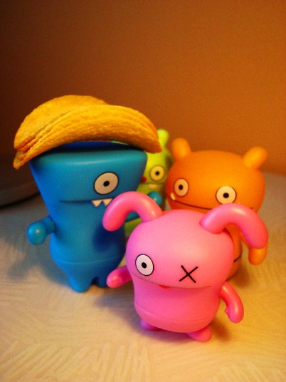 Last night while I was on the phone dealing with some work stuff I could hear little "shhhhh", "shh" noises coming from the table at the other side of the hotel room, when I turned round Ox, Wage, Jeero and Wedgehead froze in their tracks, Wedgehead sporting 4 Pringles stacked up on top of his head.