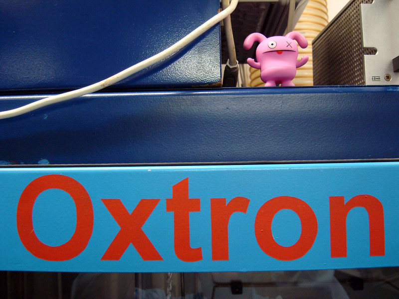 You can imagine Ox's excitement when he discovered that one of the machines in the lab we're working in this week has a huge sticker on it saying "Oxtron".