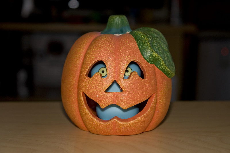 As I turned to walk away this time I heard "evil pumpkin" being whispered in a little scary voice, I looked closer and found Babo Jr hiding inside making the noises.