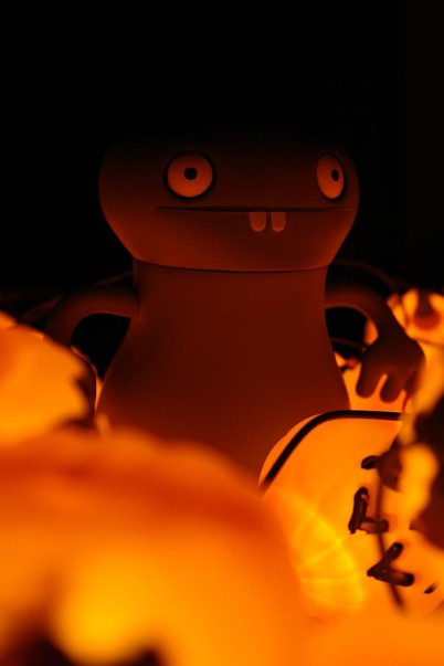 After almost 3hrs of chanting and summoning the magical power of the halloween pumpkins Babo finally stirred and stood up of his own free will (much better than standing up from zombieness), he seemed a little disorientated at first but eventually seemed to come round fully.