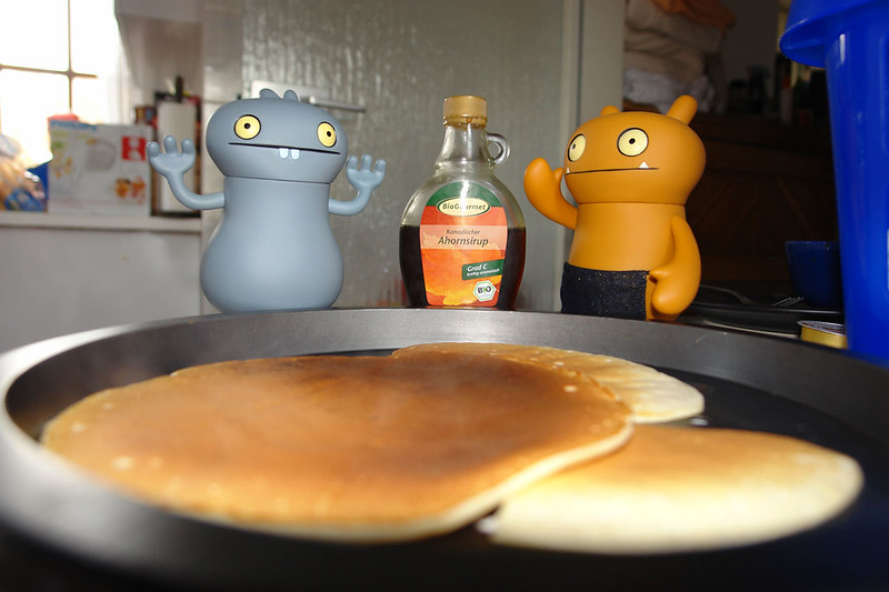 Once the guys had started moving the pancakes from the frying pan to the baking tray they began to debate what was best to have on the pancakes - Wage was certain there was no option other than Golden Syrup which he said was the only REAL choice to make, Babo suddenly had an idea for another option...