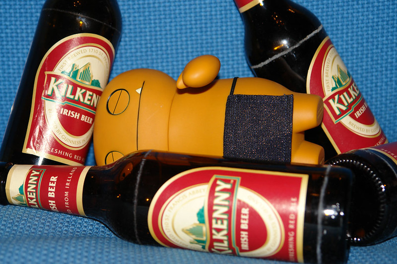 I came home from work this evening to find Wage completely out for the count on the couch surrounded by empty bottles of Kilkenny which he seems to have taken a fancy for lately.