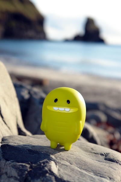 After sampling the local whisky at the Talisker Bay distillery Turtle walked through the little path which winds it's way down to the volcanic ash coloured sandy beach at Talisker Bay and after negotiating the many loose stones which make up the rear of the beach he posed with one of the sea stacks in the background.