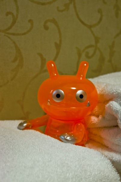 A few minutes later there was a knock at the door and when I opened it I was amazed to see that Kaiju Wage was working in the hotel, in this case delivering us some new towels.