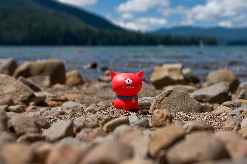 After recovering from his mile long run in search of some snow earlier in the day Rolf was more than happy to take a little stroll around the stone covered beach at Elk Lake.