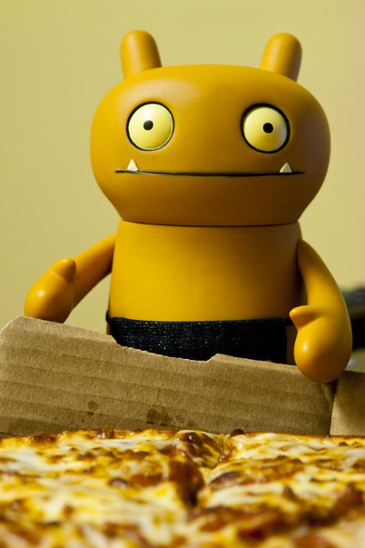 A few seconds later he shouted, "Opens your eyes....fancies a slice?" while pointing towards a pizza which now lay in front of me.