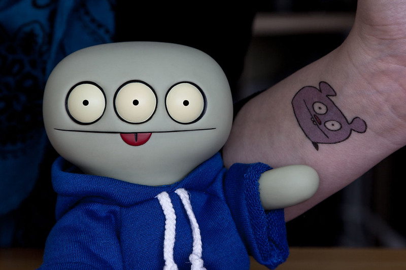I hads the brainwaver to gives her some uglies luck to takes along with her, in the forms of a tattoo of my gooders buddy Trunko. A biggers thanks you must goes out to Daniela and my littlerests buddy Fabian who sendereds the tattoos to Mireille, I is sure they will be happiers to sees them puts to gooders use!